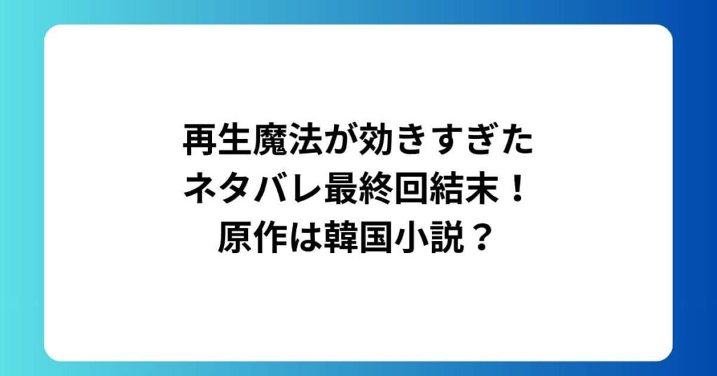 再生魔法が効きすぎたネタバレ最終回結末!原作は韓国小説?